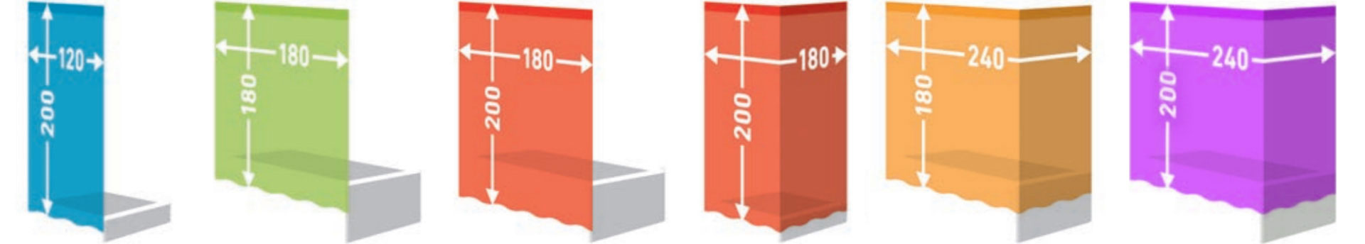 - 240 × 180 cm – für Badewannen mit Ecke oder L-förmiger Duschvorhangstange